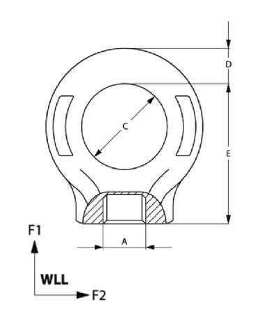 | WLL F1 (t) | WLL F2 (t) | SIZE A | WEIGHT (kg) | B | C | D | E | G |