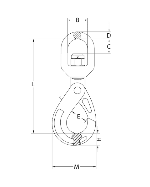 Grade 100 Swivel Self-Locking Hooks feature a plain bearing swivel that allows the hook to rotate, helping to reduce sling twist during lifting. Designed for secure load handling, they automatically close when the load is engaged and remain locked until the trigger is pressed.