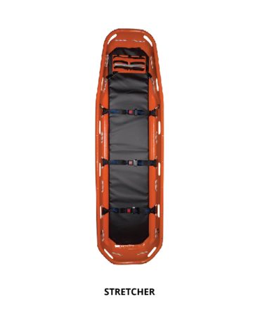 Suitable for both vertical and horizontal use, the one-piece basket stretcher includes patient restraint straps, a 40mm thick removable PVC mattress, and footrest. Designed for durability and ease of patient handling in rescue situations.
