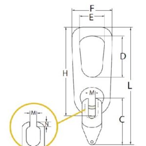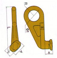 | Type | WLL F1 (t) | WLL F2 (t) | Size | B | C | D | E | G | L | Weight (kg) |