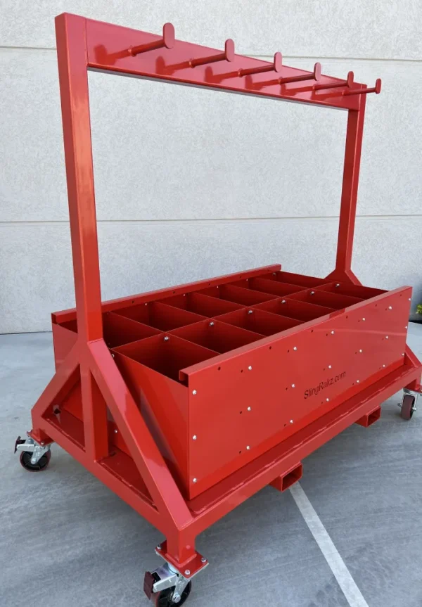 The 2T Heavy Duty Rak is a double-sided mobile rigging rack with heavy duty tray, perfect for the storage of medium to heavy weight chain slings and rigging equipment. It is suitable for small to large workshops, where there is enough floor space to access both sides of the unit