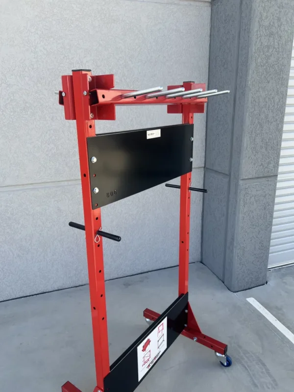 - Material: Powder-coated steel, mild steel (pins), castor (wheels)