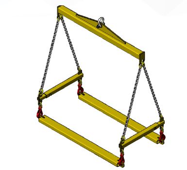 - Supplied with four lifting chain assembly, two lower adjustable spreader beams, four 2t latch lock hooks and two lifting forks