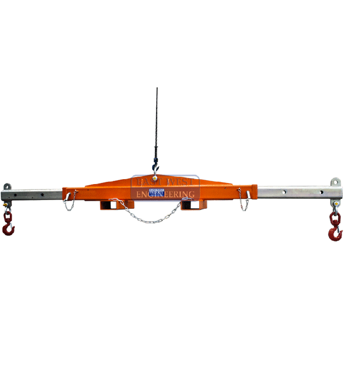 When used by crane, loads can be lifted via the centre single hook point as a ‘Lifting Beam’, or end lifted using a 2 leg chain sling as a ‘Spreader Beam’.