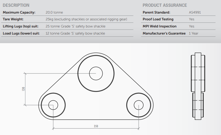 - Tare Weight 25kg (excluding shackles or associated rigging gear)