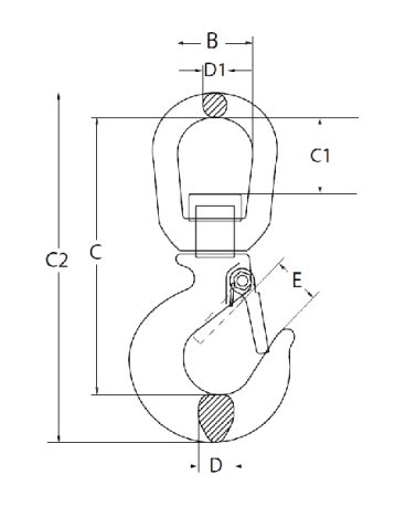 | WLL (tonne) | WEIGHT (kg) | B (mm) | C (mm) | C1 (mm) | C2 (mm) | D (mm) | D1 (mm) | E (mm) |