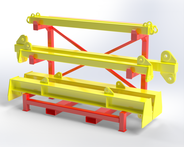 The SR64 has 3 bays for storing large beams safely off the ground and ready for transport and forklift pockets, lashing/tying down points, and lifting points, which allow the user to safely secure and transport spreader beams.