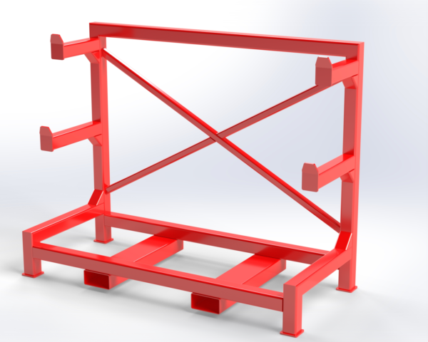 The SR64 Large Single Spreader Beam Rack is a single-sided rack used for the storage and safe handling of large spreader beams, with a capacity of 2.5 tonne.
