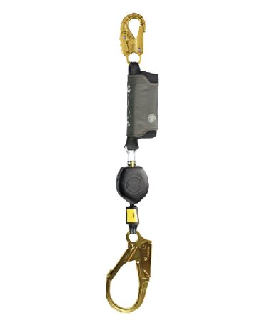 This compact single-leg fall arrest device features the One-4-All shock absorber and FS 90 ANSI carabiner, approved for 50–135kg users. 1.8m length ideal for aerial work platforms.