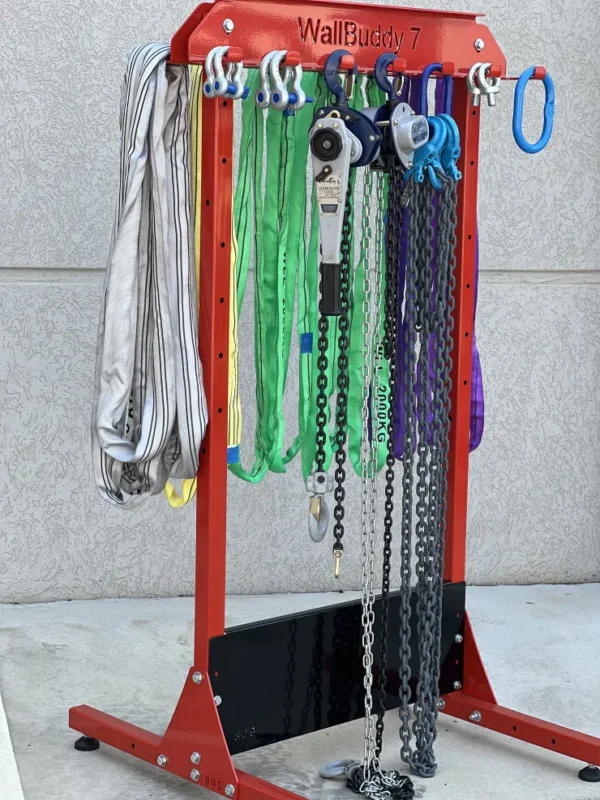 The SR24 WallBuddy Rak is a freestanding, double-sided floor rack that provides a cost-effective way to safely store lightweight rigging equipment. It is suitable for small to large workshops where there is enough floor space to access both sides of the unit.