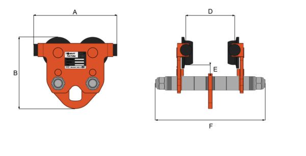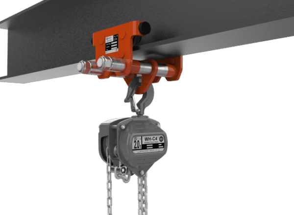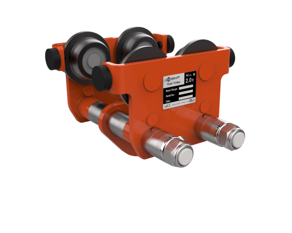 The William Hackett Push Trolley is designed, developed and tested in the UK. It has 2 bars which creates greater stability and has various sized spacers which are used to determine the distance between the 2 plates and the beam width. The trolley can be pushed along the beam and has rubber end stops to prevent damage. The hanging plate has a large eye which can accept various sized lifting hooks. We can offer training on safe use and inspection.